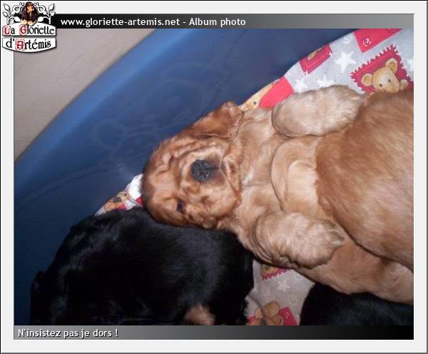 ... Une certitude, il restera le 1er bébé nait chez nous ! Elodie et Arnaud, Marie et moi même vous souhaitons beaucoup de bonheur avec votre petit cockérinos ... je peux vous assurer qu'il est adorable et qu'il nous manquera bcp mais nous savons aussi que notre gueule d'amour sera chez de très bons maîtres ! Une amicale pensée et un grand merci à super papa Billy, à ses maîtres Carol Sabine et dany ...