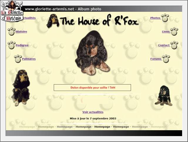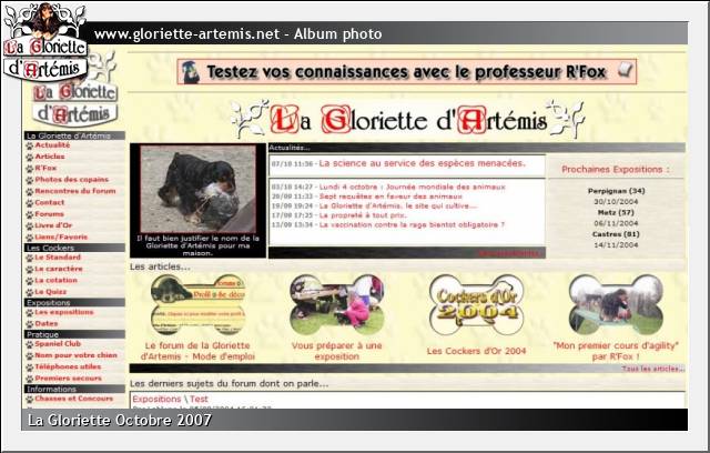 Parallèlement à ça, infographiste de profession, je me mettais discrètement sur mon temps libre à la programmation Web un peu plus poussée que le simple HTML qui m'avait permis de faire la Maison de R'Fox. Et en douce, je préparais un beau forum personnalisé rien que pour les amoureux de cockers-anglais.